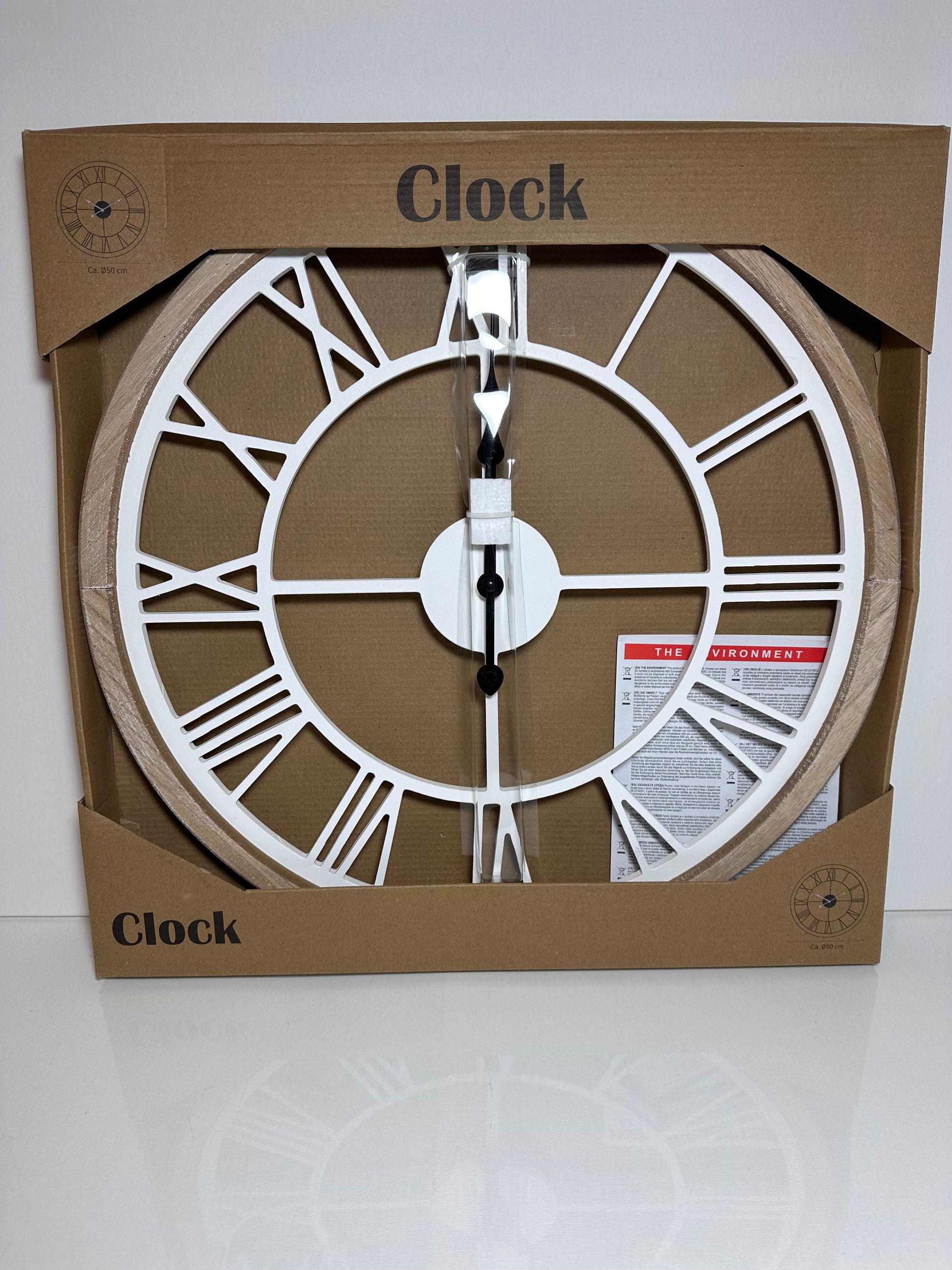 Stor väggklocka i trä – Ø 50 cm
